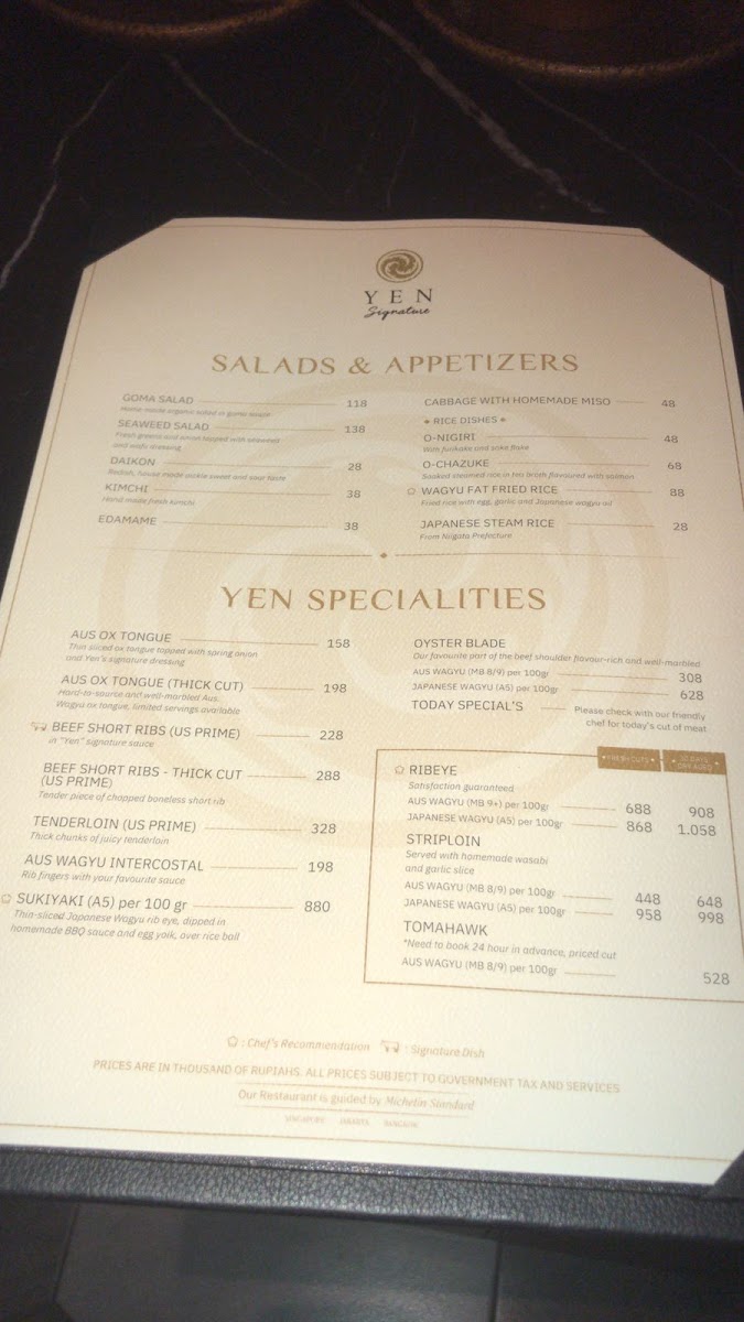 Welcome to Yen Signature, a hidden gem located in South Jakarta that elevates your dining experience to a new level. Renowned for its exceptional Japanese Wagyu beef and meticulously prepared dishes, Yen Signature is a must-visit for meat lovers. Customers rave about the tender cuts, including the Oyster Cut and Tenderloin A5, which are expertly grilled right before your eyes.